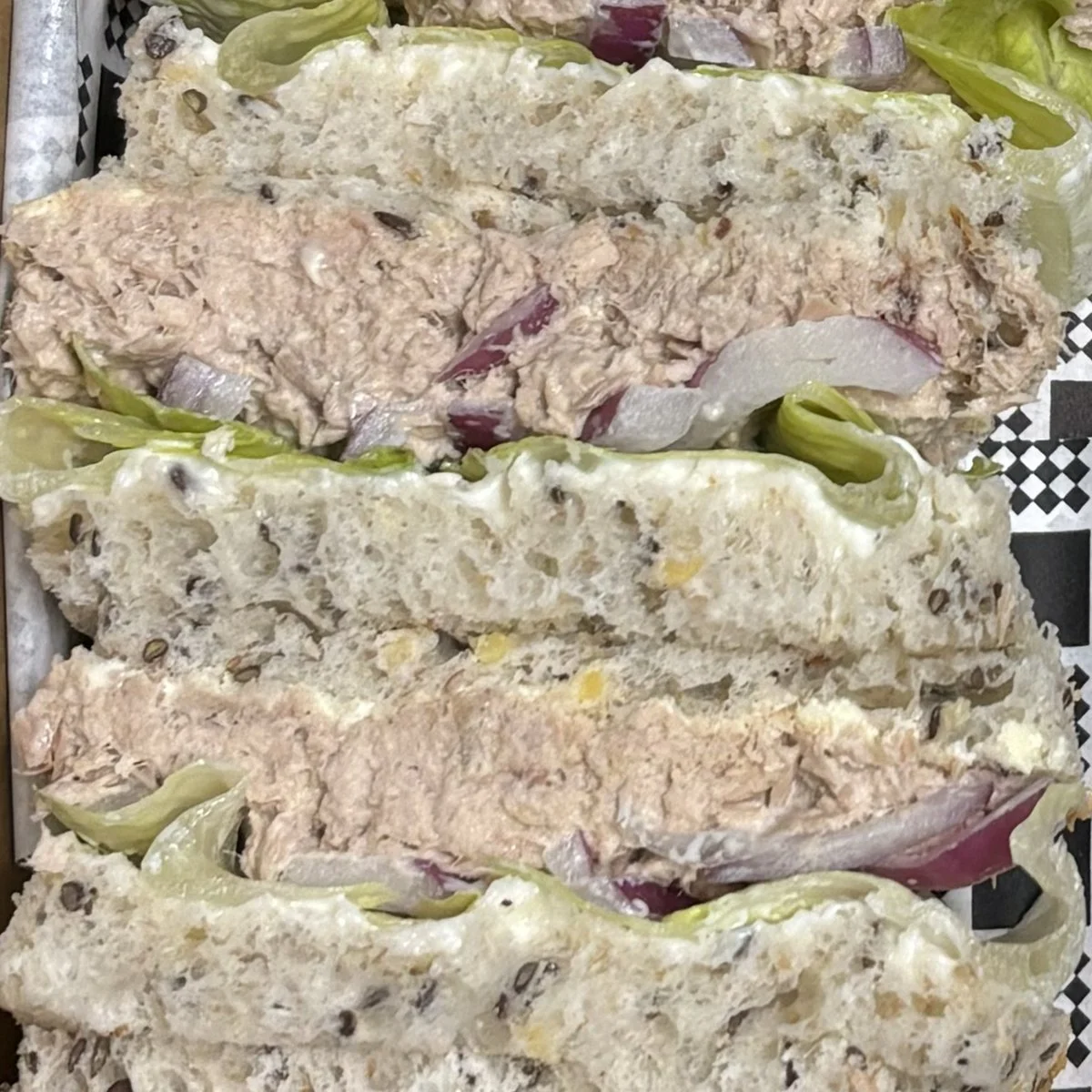 Our tuna mix, red onion, lettuce