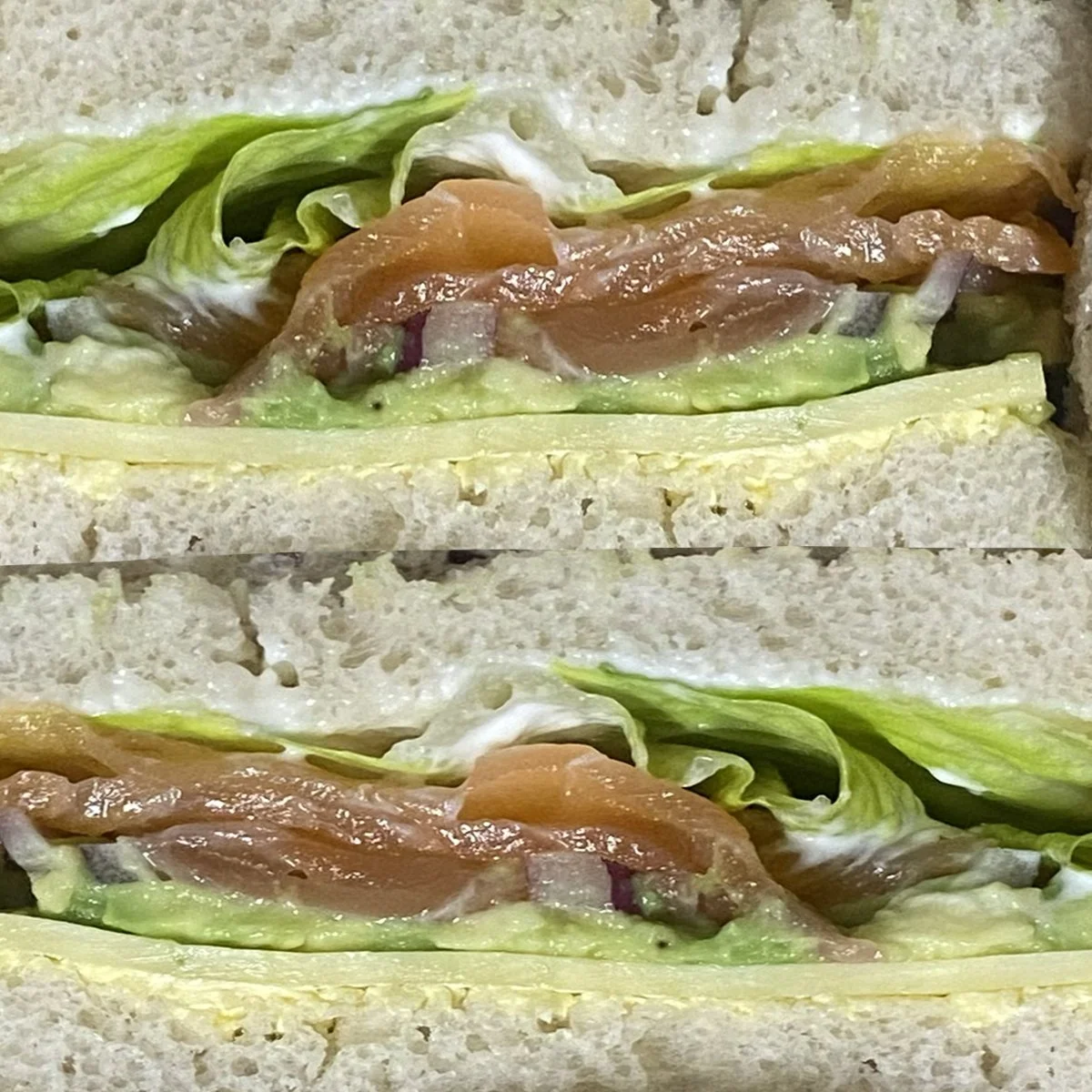 Smoked salmon, lettuce, avo, tasty cheese, mayonnaise
