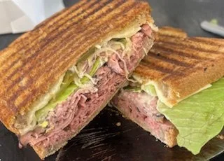 NYC Style - pastrami, pickles, sauerkraut, lettuce, swiss cheese